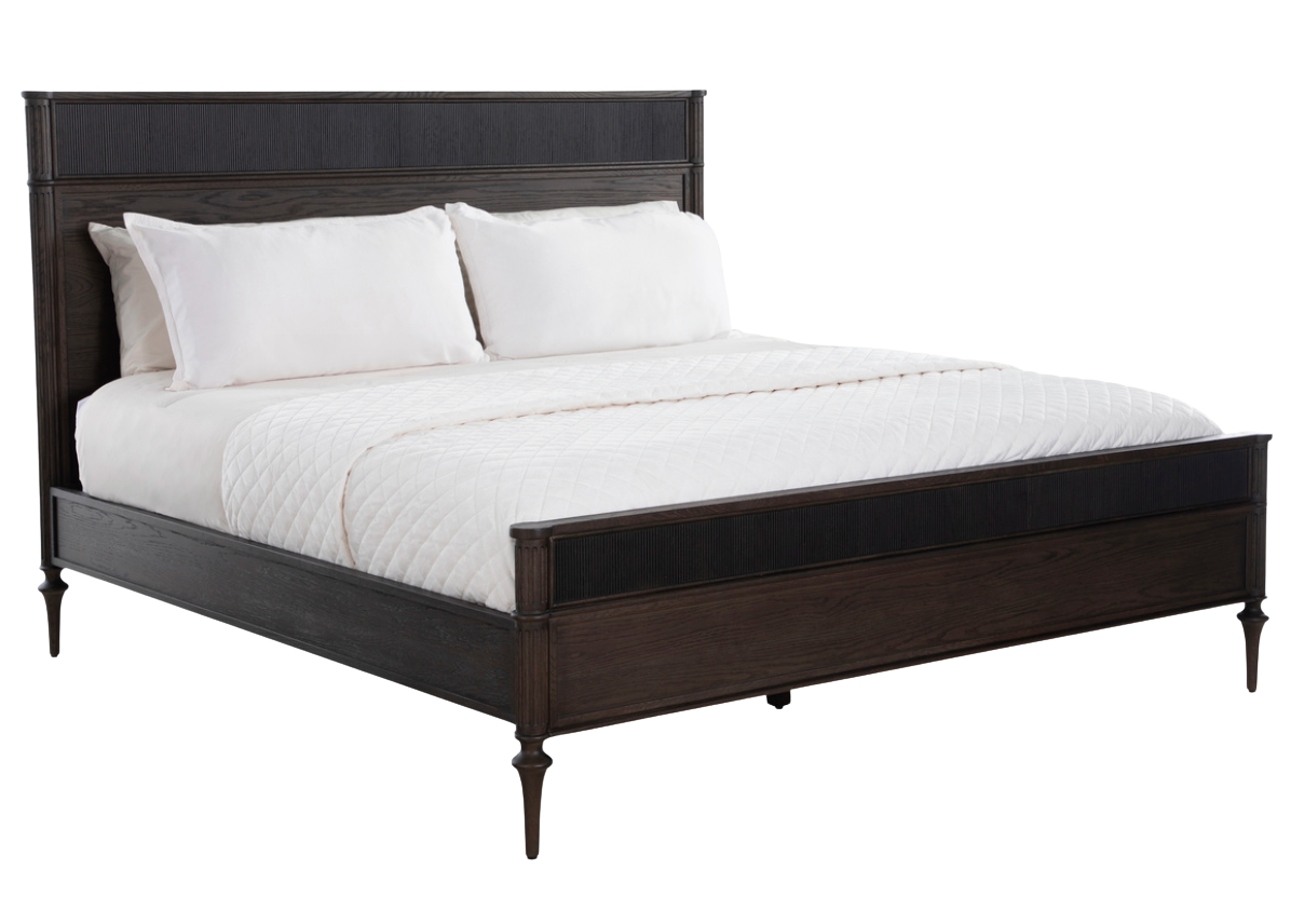 The Andrea King Bed blends timeless elegance with bold craftsmanship in a rich dark stained oak finish. Subtle fluting along the headboard and footboard panels adds depth and texture while the gracefully tapered legs provide a touch of classic refinement.