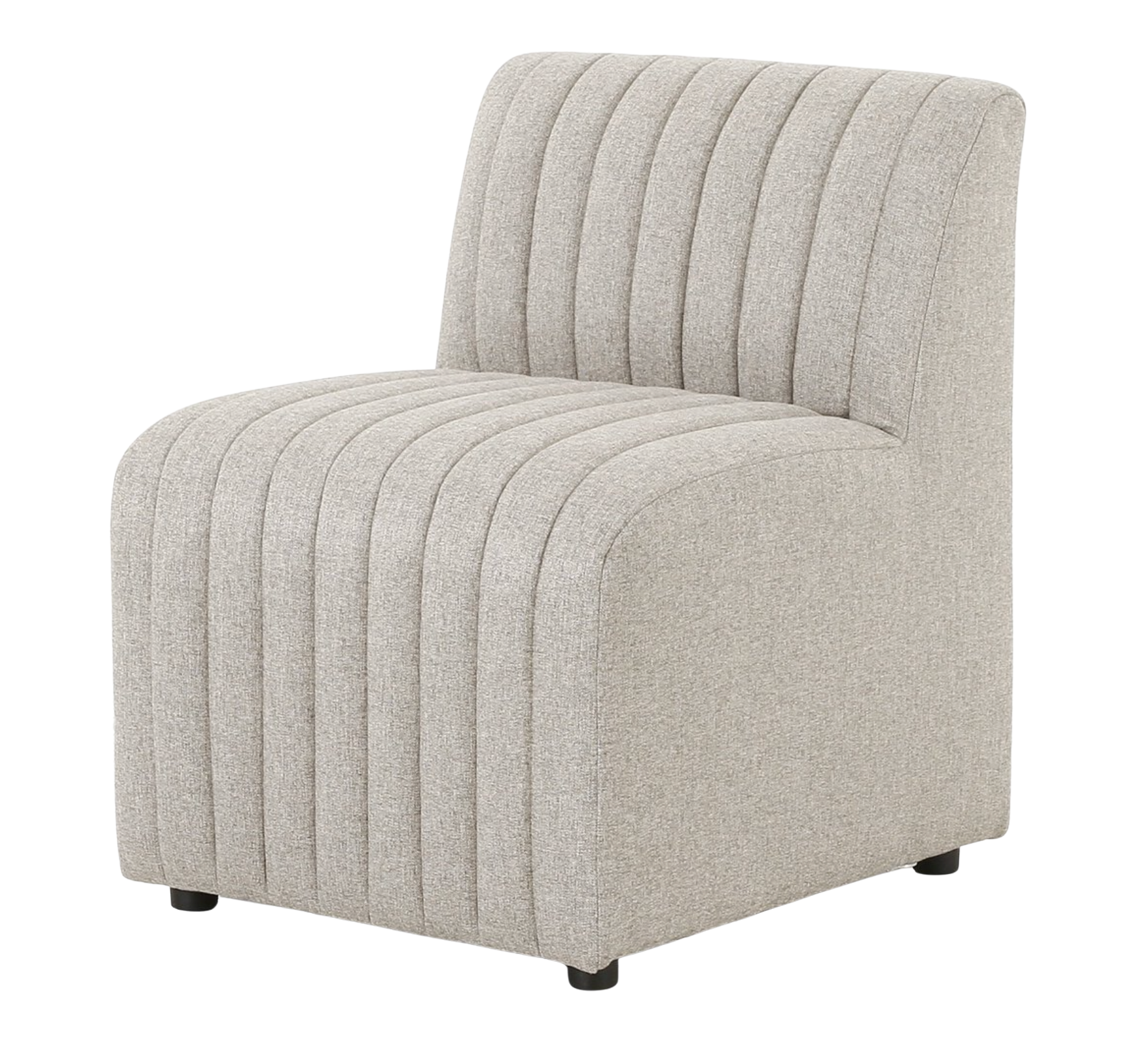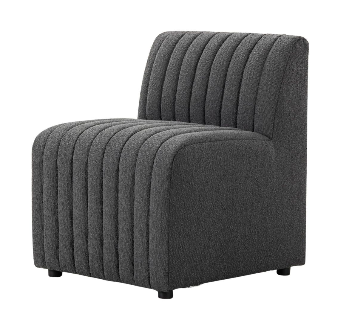Polyester fabric in a light grey hue features dramatic channeling, for texture and a comfortable sit.