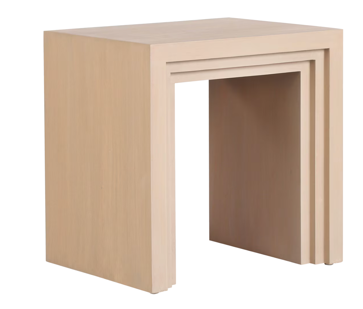 The Cascade Rectangular Side Table captures the essence of flowing water with its cascading waterfall silhouette. Crafted from high-quality mango wood veneer with a natural, brushed-distressed finish, it brings a warm, organic feel to any room by showcasing the beauty of the wood's unique grain. Its distinctive 3-step design adds an element of movement, perfect as a spacious side table in living rooms or as a nightstand that echoes the calm of nature. Delivered fully assembled, this piece seamlessly blends functionality with a refreshing, fluid style.