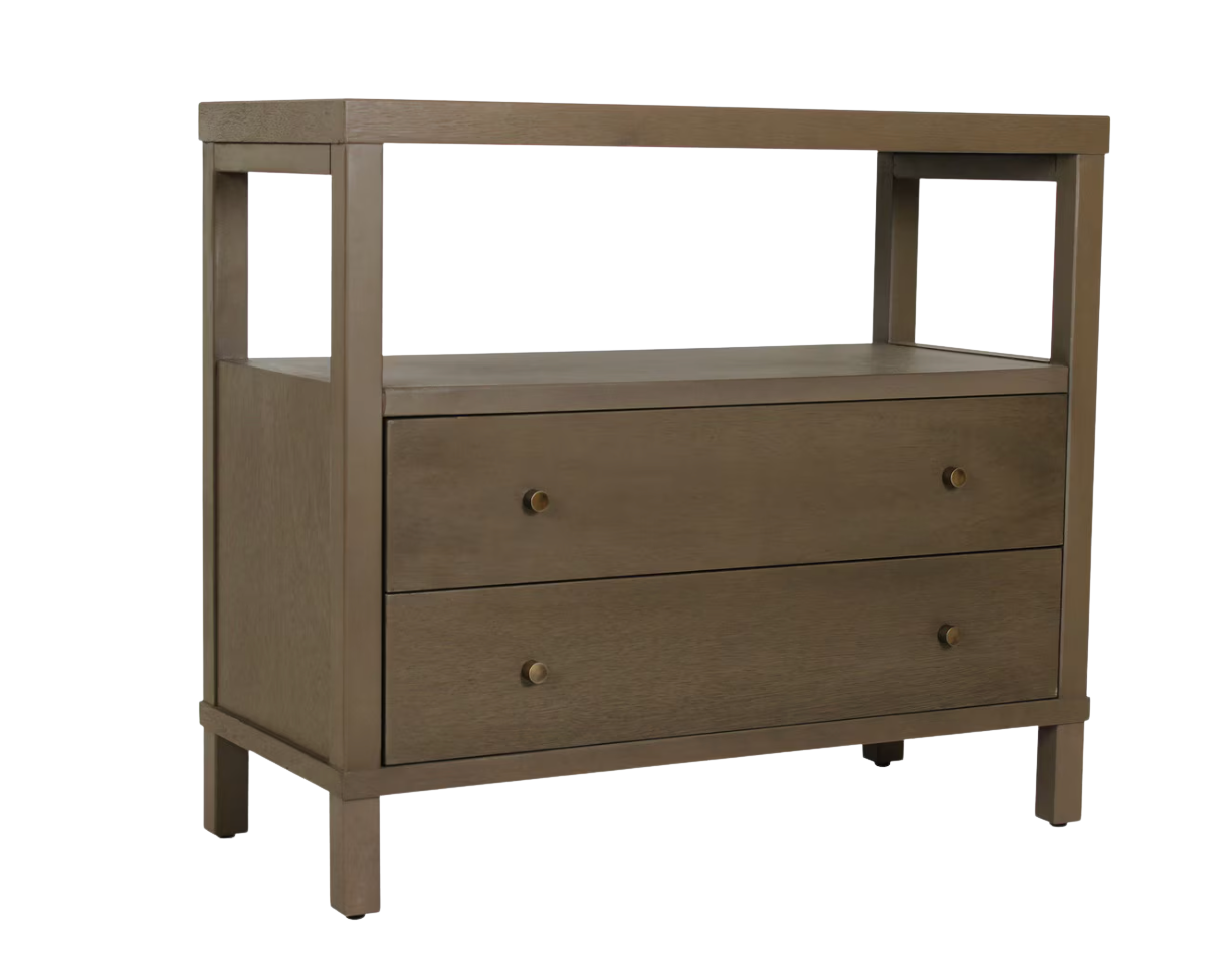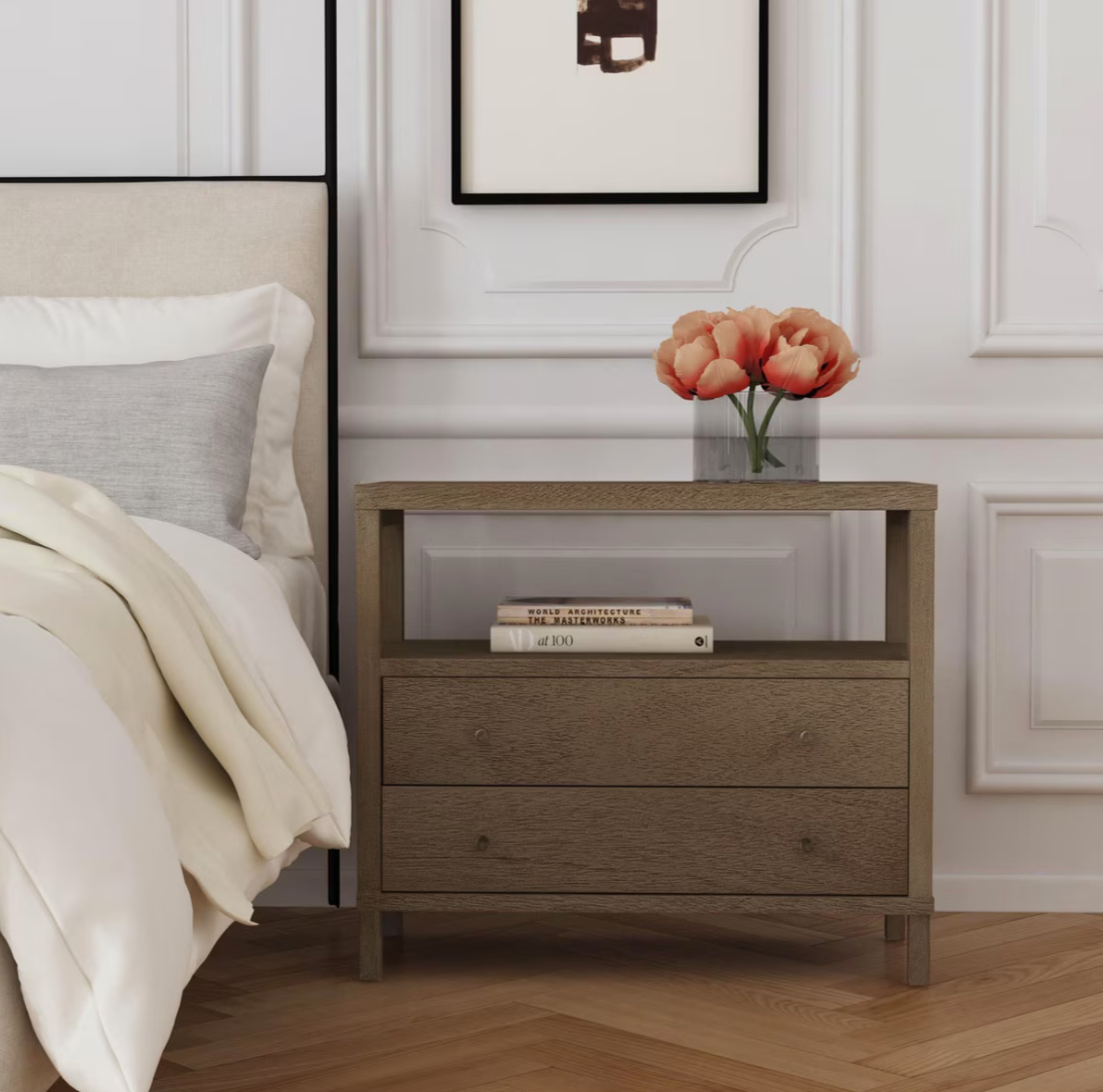 Featuring generously sized double drawers and an open shelf, this nightstand offers substantial storage for your bedroom essentials, ensuring practical organization. Crafted from natural bayur wood, its rich color of warm brown showcase a versatile transitional design that seamlessly blends simplicity and functionality. An ideal addition to your home decor, this tailored nightstand strikes the perfect balance between style and utility.