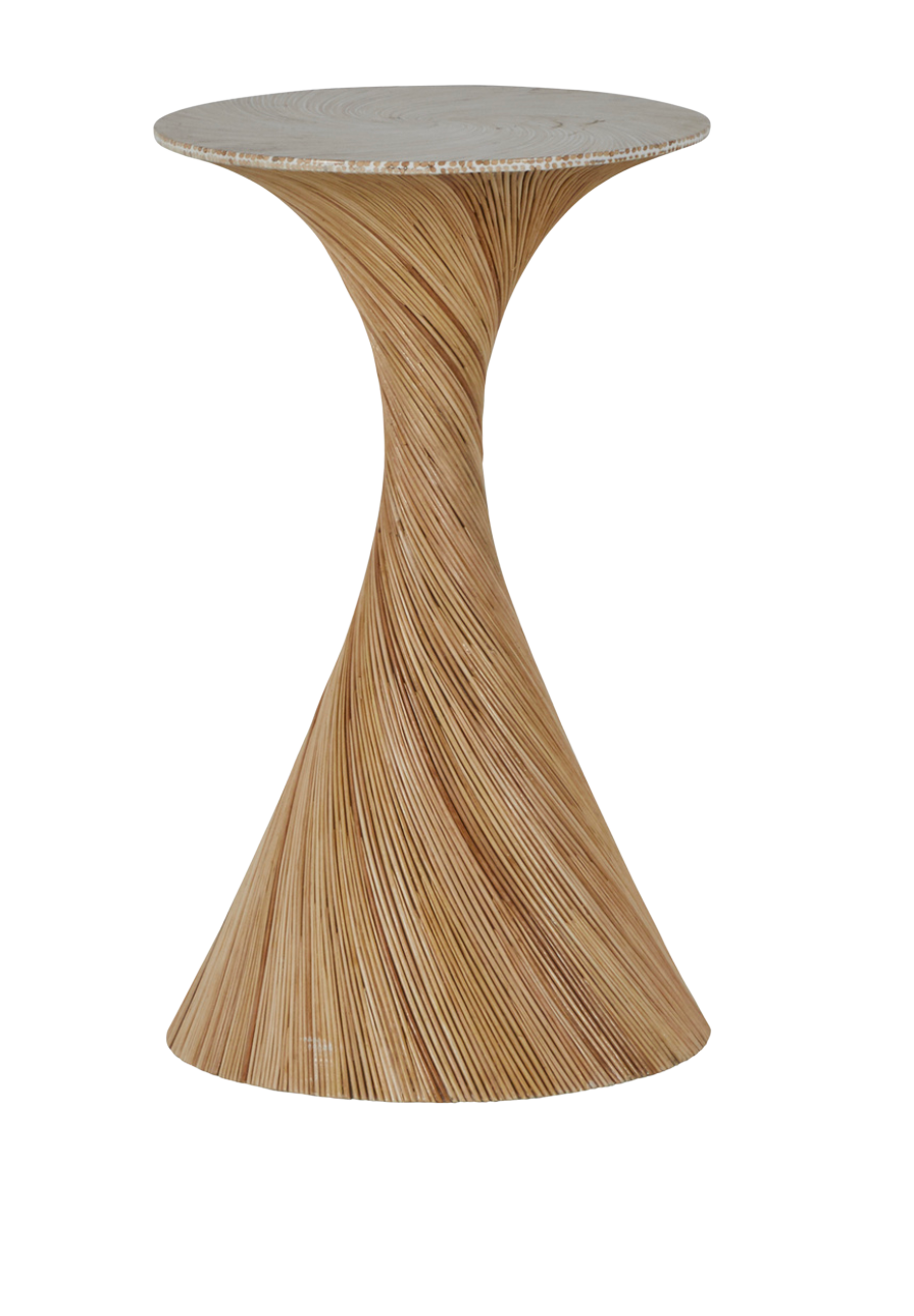 The Kirk Drink Table features a striking whirling rattan design that brings a fresh casual vibe to any space. Made of natural rattan and resin this statement piece is as versatile as it is eye-catching.