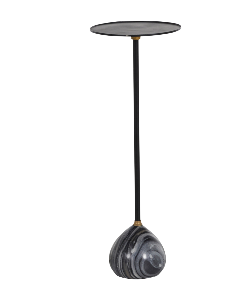 The Nelle Drinking Table is the epitome of simplicity and sophistication. Its compact design offers the perfect solution for holding a beverage without occupying much floor space. The elegant rimmed tabletop is beautifully supported by a solid block of intricately detailed marble creating a harmonious blend of functionality and opulence. Crafted from iron and marble this table features finishes in black metal antique gold and gray marble making it a striking yet understated addition to any living space.