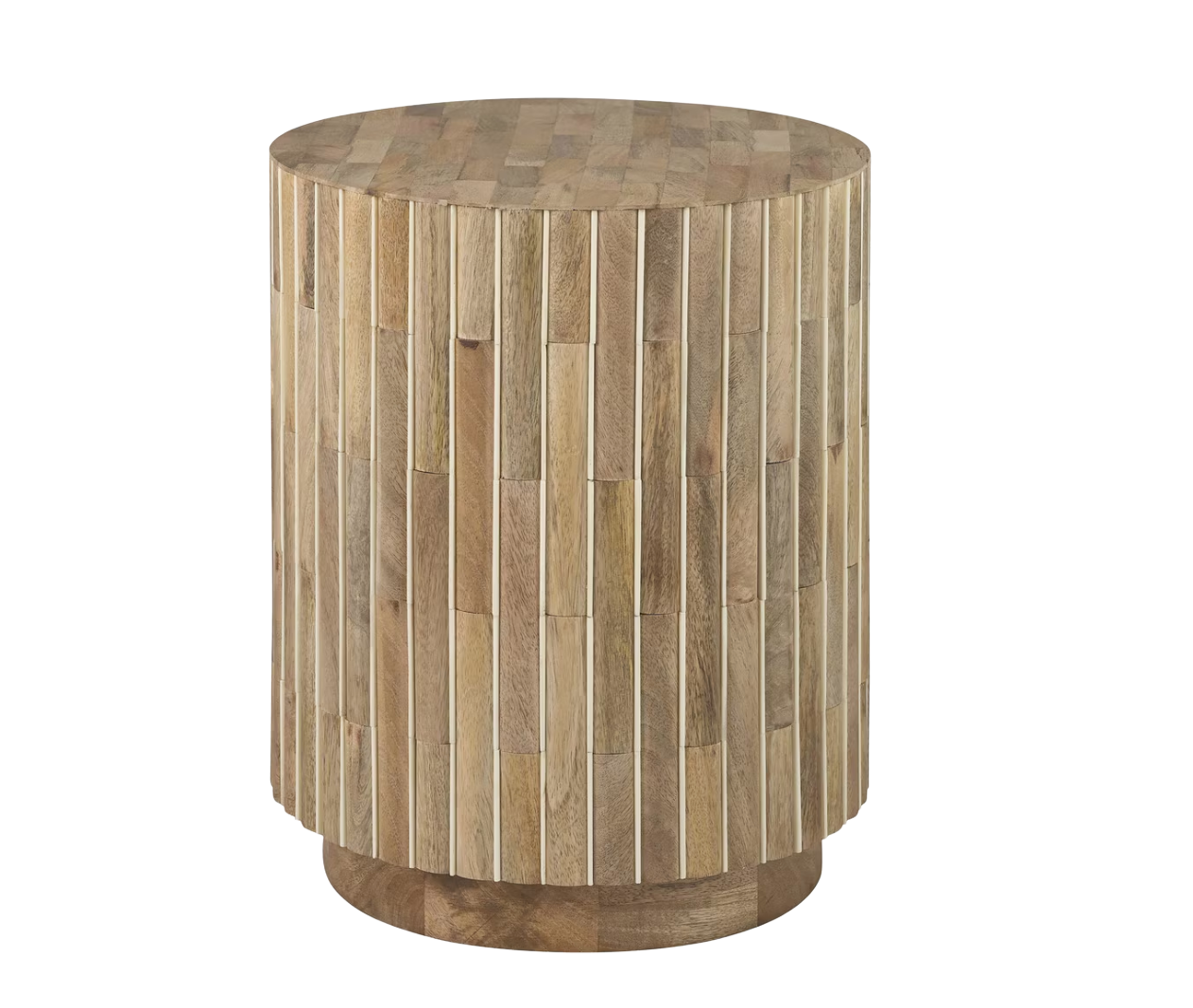 Round Mangowood Striped Plinth Base Accent Table