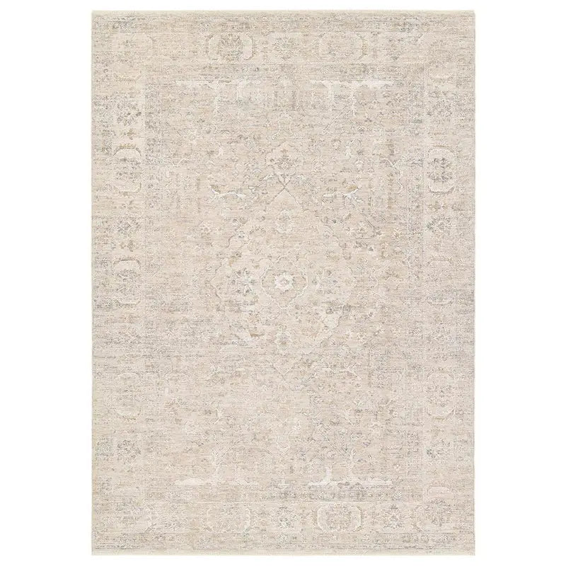 Elegant and classic, the Aslan design presents a largely sought-after Tabriz-inspired pattern in a durable, powerloomed construction. The beautiful tan and gray medallion pattern effortlessly elevates any medium-traffic indoor setting. Space-dyed polyester introduces subtle, intriguing color variation, while the cross-woven fringe detail adds a touch of texture and visual interest. With a soft, velvety feel that’s easy to care for, here’s refined living made easy.