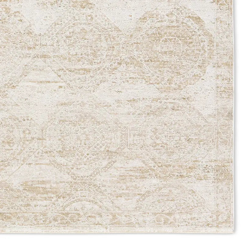 Elegant and classic, the Nara design presents a largely sought-after Oushak-inspired pattern in a durable, powerloomed construction. The beautiful white and tan oriental pattern effortlessly elevates any medium-traffic indoor setting. Space-dyed polyester introduces subtle, intriguing color variation, while the cross-woven fringe detail adds a touch of texture and visual interest. With a soft, velvety feel that’s easy to care for, here’s refined living made easy.